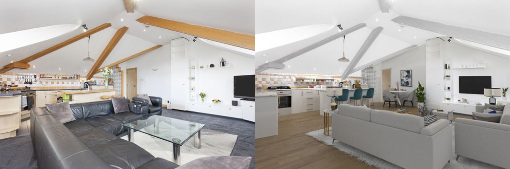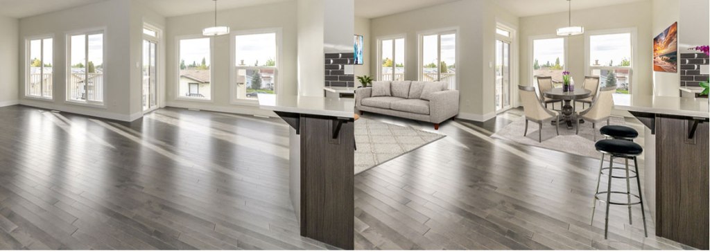 Tanto en casas amuebladas, redecorando virtualmente la estancia con muebles actuales y frescos.