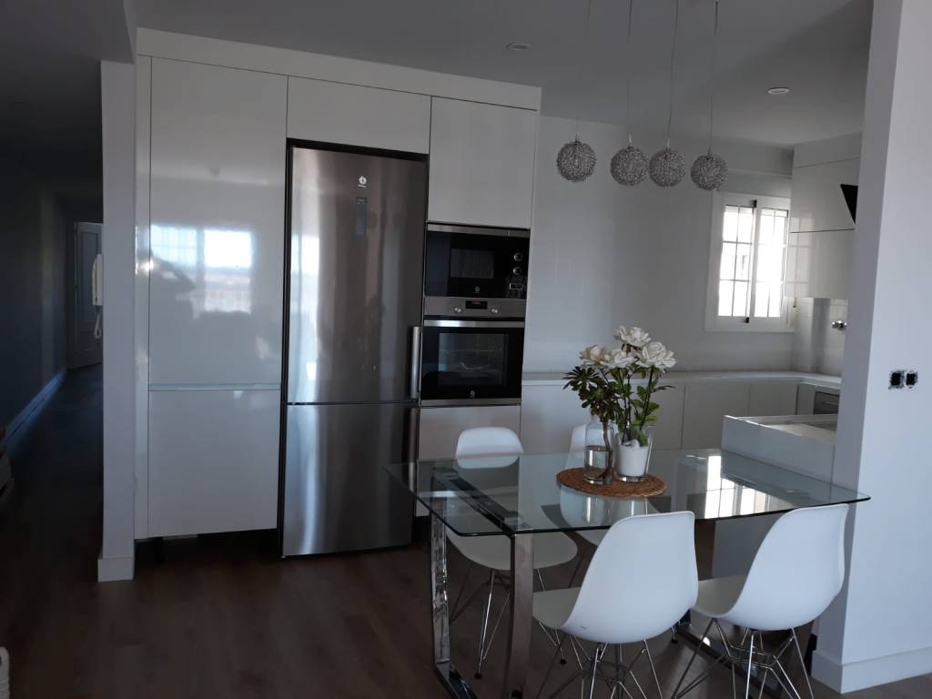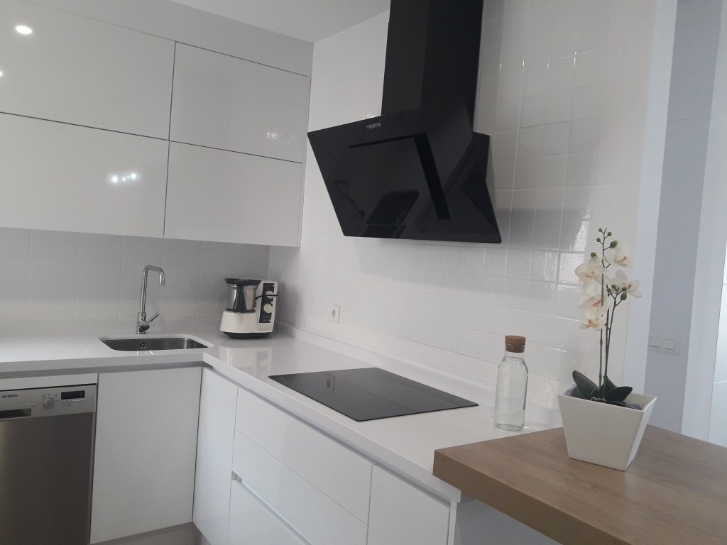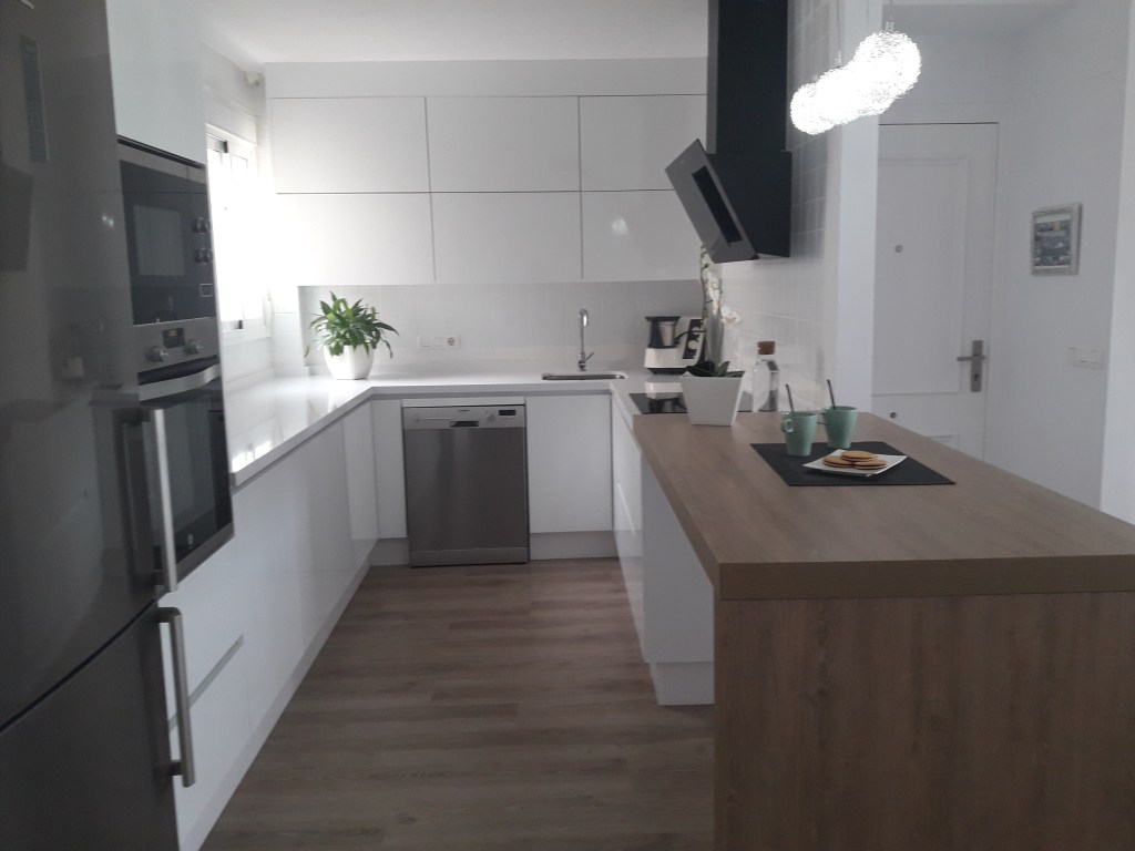 Deciros que cuando buscabamos casa, teníamos dos prioridades. La primera de ellas es que estuviera orientada al sur. Y la segunda era que la pared de la cocina se comunicara con el salón para poder hacer así una estancia única.